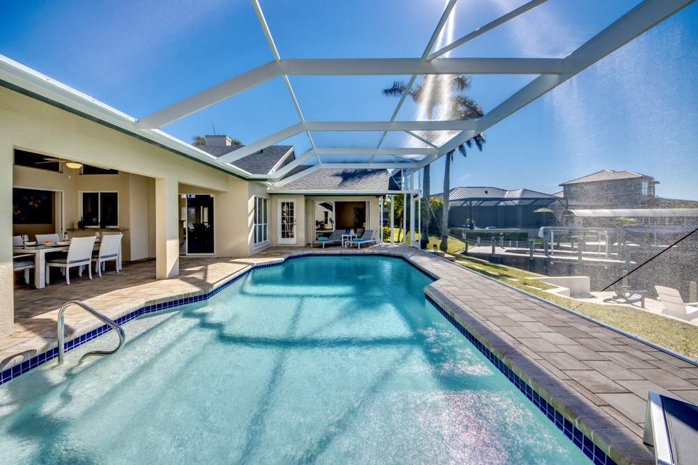 The house sits in a great location in Cape Coral. It is not too far from beaches, shopping, great restaurants. In the garage there were beach chairs and a cooler that we used almost every day. The kitchen was well equipped with pretty much every kitchen utensil you would need. We grilled 3 nights we were there and enjoyed the beautiful sunset. Our kids, ages 10 and 11 were in the pool everyday and it was the highlight of the trip.