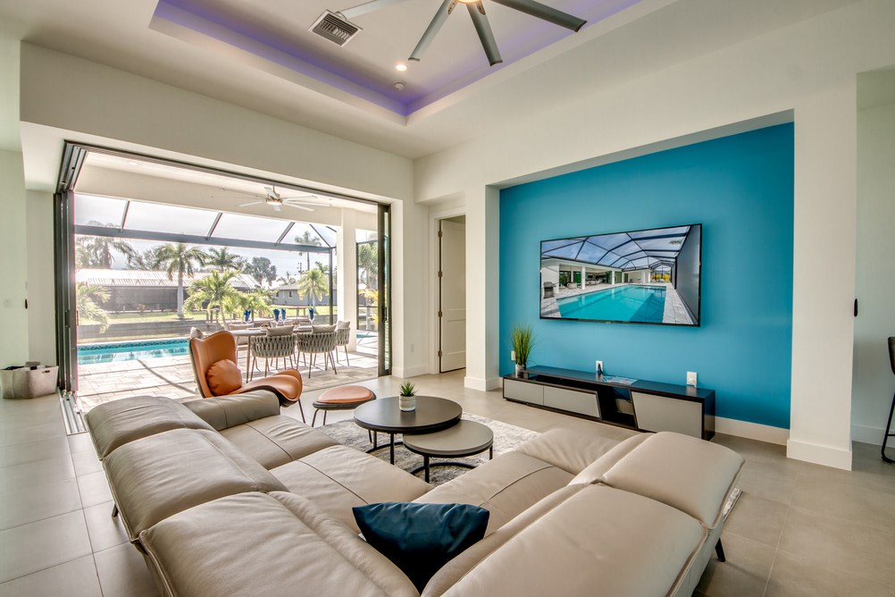 The house is new, very clean and well stocked with pretty much everything you need to start your vacation. We had one maintenance question, and it was answered very quickly. The outdoor space is amazing and the location on the water is very quiet. We liked the location overall within Cape Coral. Close to downtown and the Marinas. The neighborhood seems safe and quiet although very close to Skyline which is a busy road. You didn't hear much noise other than the occasional burn out or loud truck flying by on Skyline. Didn't really bother us. The house is an open floor plan - beautiful finishes and comfortable beds. Plenty of towels and kitchen is fully stocked with nice dishes and cookware. Garage was clean and accessible, and we used the laundry every day. We would absolutely stay again!